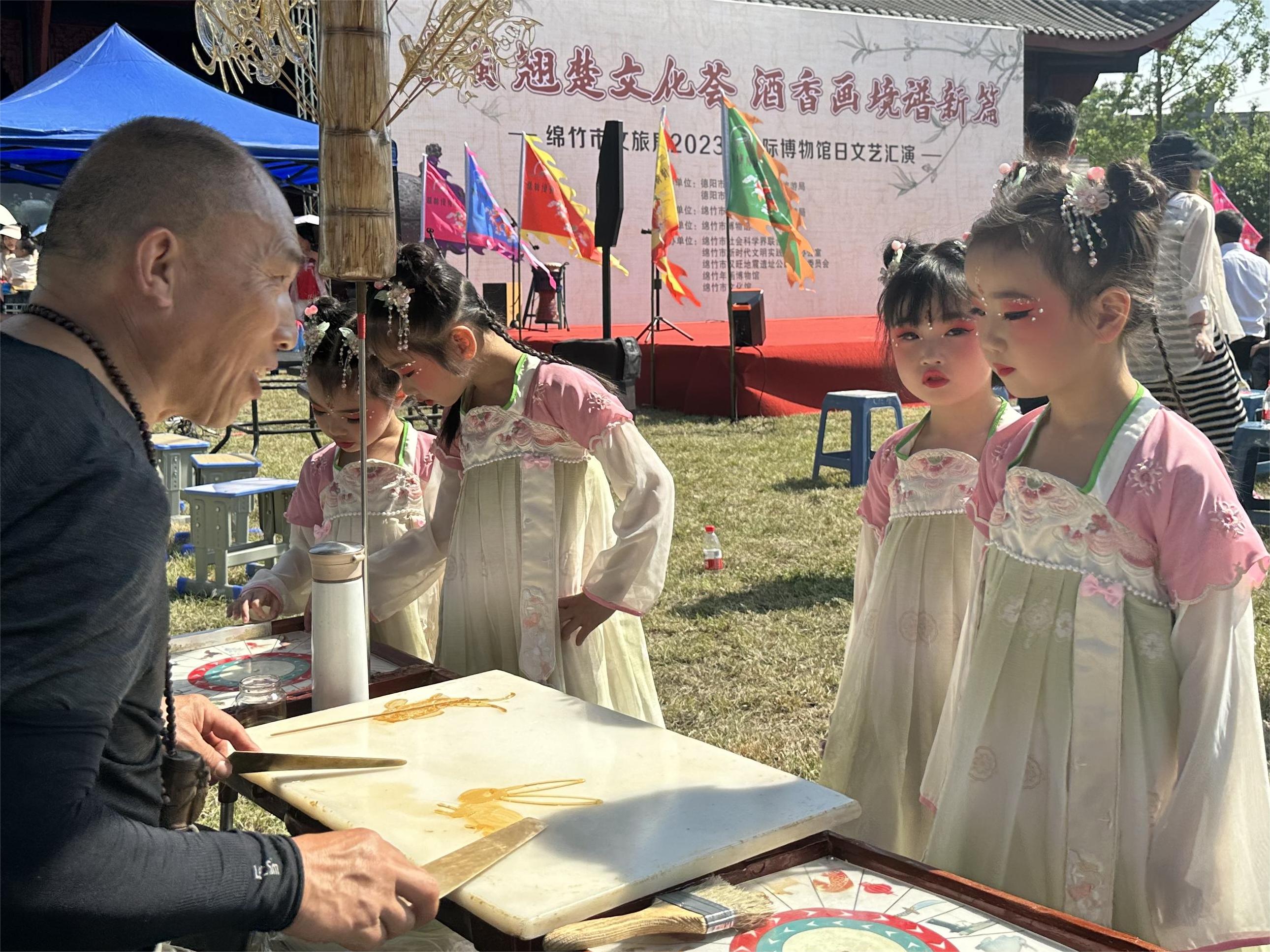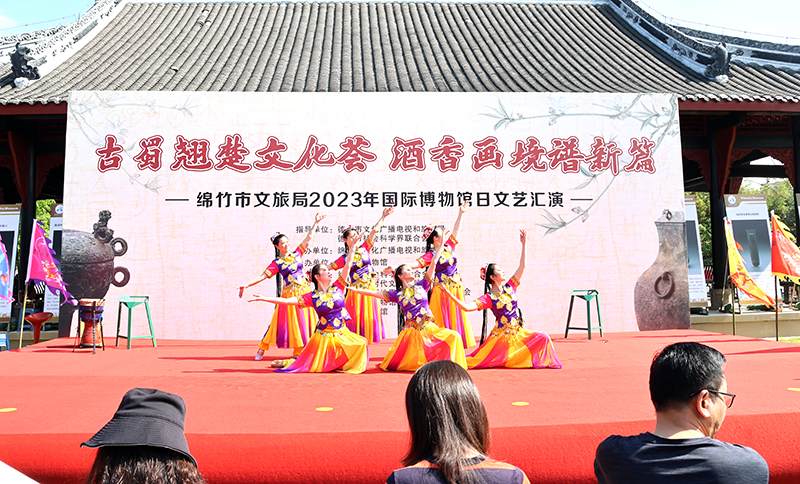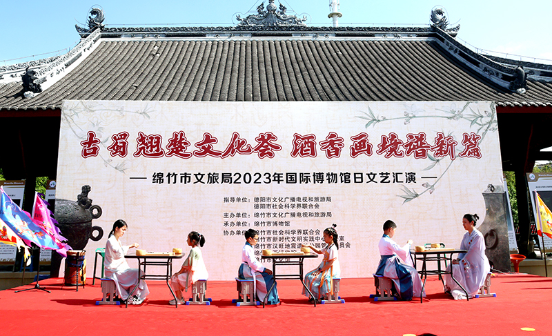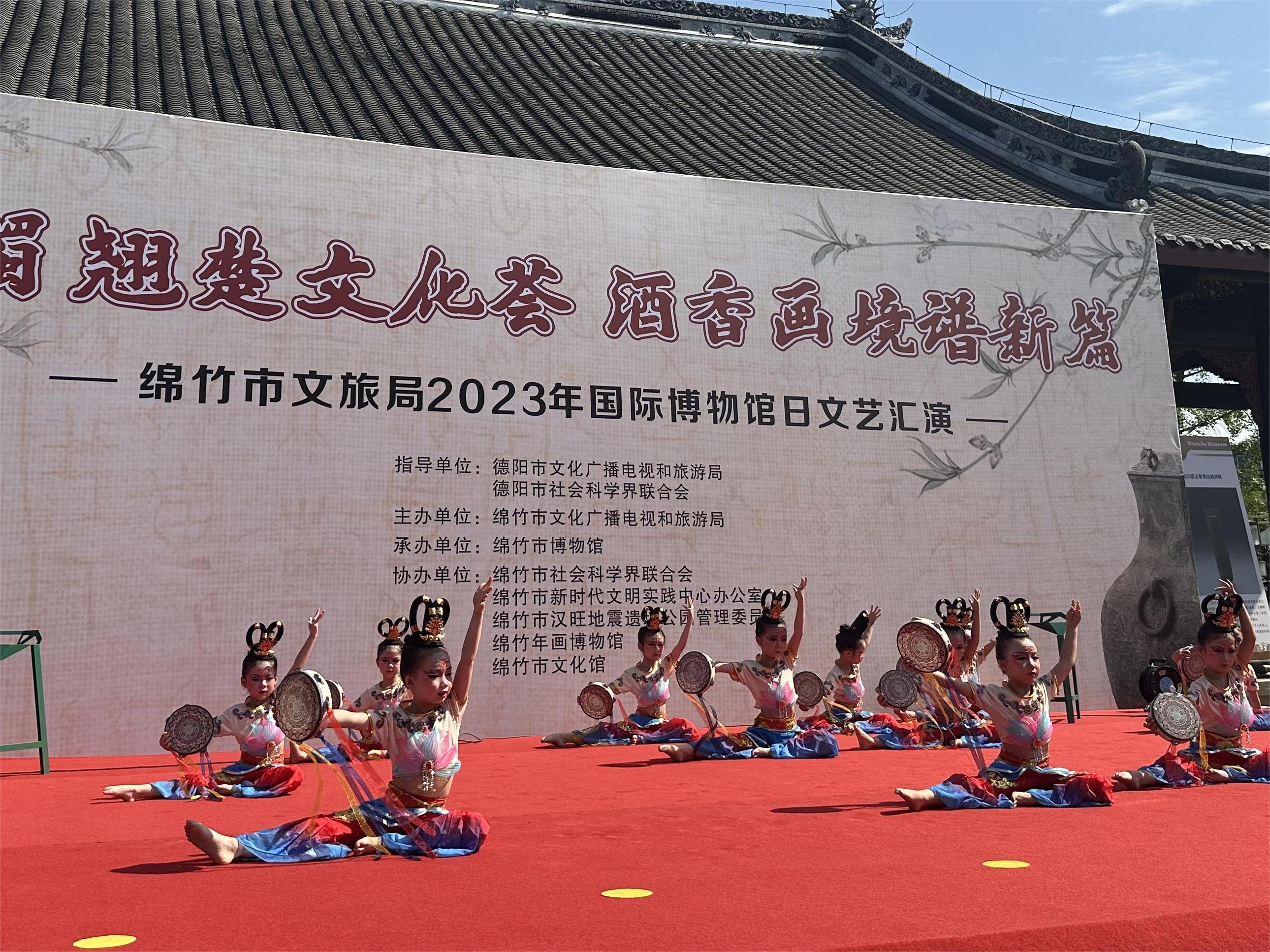 “国际博物馆日”是国际博物馆协会确定的世界性的博物馆文化宣传日,主题为“博物馆、可持续性与美好生活”。5月18日上午,由德阳市文旅局、德阳市社科联指导,绵竹市文旅局主办,绵竹市博物馆承办,绵竹市新时代文明实践中心办公室、绵竹市社联、绵竹市汉旺地震遗址公园管委会、绵竹年画博物馆、绵竹市文化馆联合协办的“古蜀翘楚文化荟,酒香画境谱新篇”——绵竹市文旅局2023年国际博物馆日文艺汇演在茶盘街天圣宫外举行。