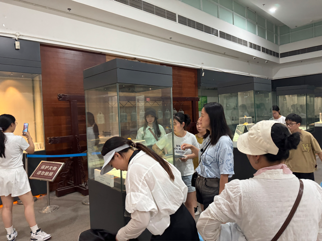 绵竹市博物馆讲解员带领青少年们参观各个展厅。从陶瓷器厅到字画厅,再到青铜器展厅,过程中,讲解员用通俗易懂的语言、生动有趣的故事,将文物背后的历史文化知识深入浅出地传授给青少年,大家认真聆听,积极提问,现场气氛热烈。