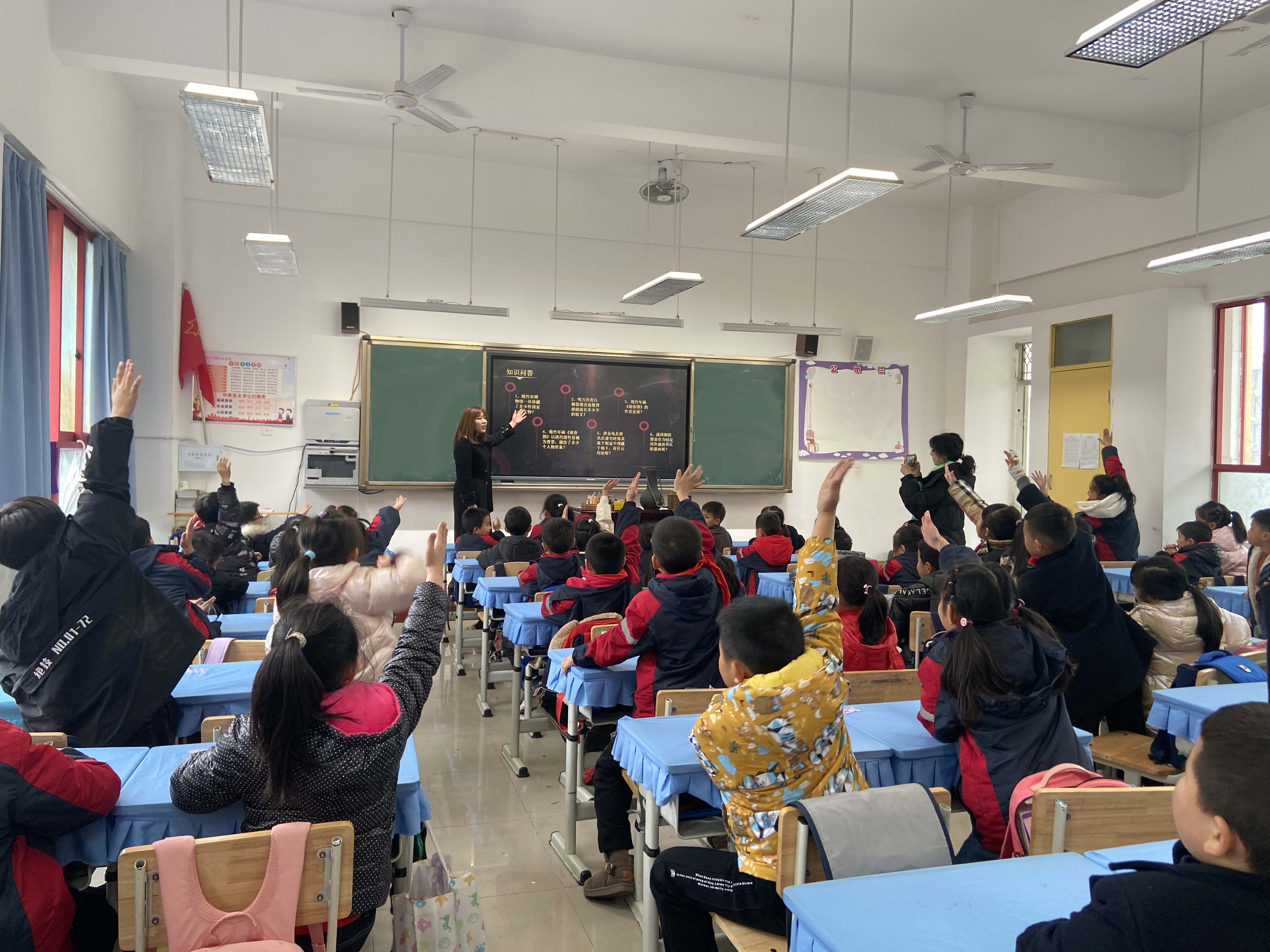 课堂上,同学们非常活跃,互动问答环节纷纷举手,踊跃回答问题。整堂课程氛围生动活泼,多媒体教学的新形式给同学们带来了一场别开生面的绵竹文化盛宴。