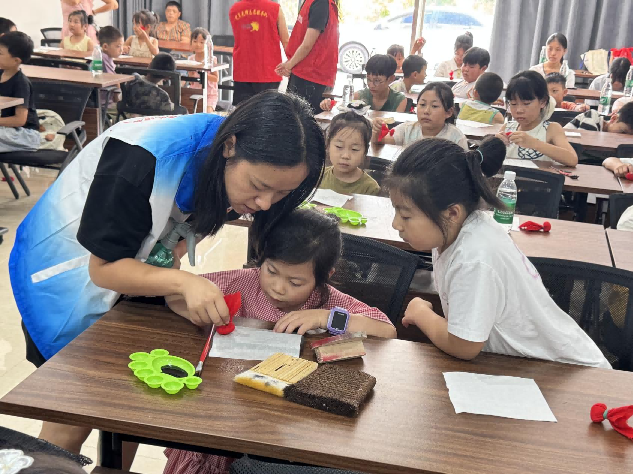 随后的非遗传承拓片工艺体验环节将活动推向高潮。小朋友们在工作人员的指导下,亲手制作拓包。从填充棉花到用皮筋收口,每一个步骤孩子们都做得认真细致。当一个个小巧精致的拓包在他们手中诞生时,孩子们脸上洋溢着满满的成就感。